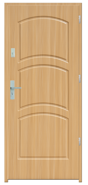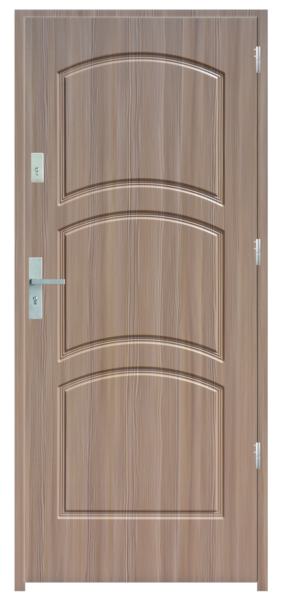 Skrzydło drzwiowe wykonane z klejonego wzdłuż i w poprzek drewna. Jego wypełnienie stanowi płyta wiórowa pełna i styropian twardy. Siatka stalowa 6 mm, komory dźwiękochłonna. Takie wykonanie zwiększa wytrzymałość konstrukcji.