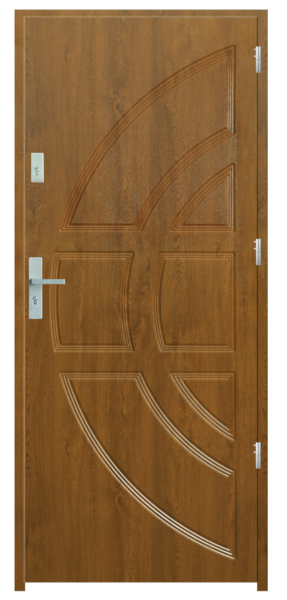 Skrzydło drzwiowe wykonane z klejonego wzdłuż i w poprzek drewna. Jego wypełnienie stanowi płyta wiórowa pełna i styropian twardy. Siatka stalowa 6 mm, komory dźwiękochłonna. Takie wykonanie zwiększa wytrzymałość konstrukcji.