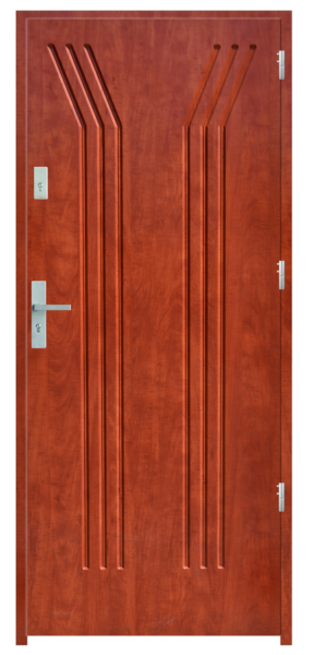 Skrzydło drzwiowe wykonane z klejonego wzdłuż i w poprzek drewna. Jego wypełnienie stanowi płyta wiórowa pełna i styropian twardy. Siatka stalowa 6 mm, komory dźwiękochłonna. Takie wykonanie zwiększa wytrzymałość konstrukcji.